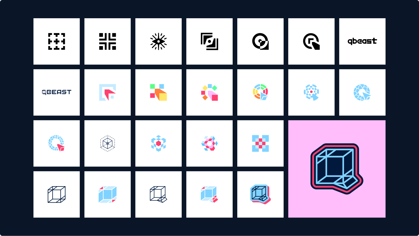 The Qbeast logo is built on clarity, structure, and multidimensional thinking. Derived from the relationship between the letterforms Q and b, the final mark also draws on the dimensional logic of a tesseract, resulting in a form that feels precise, layered, and intentional.