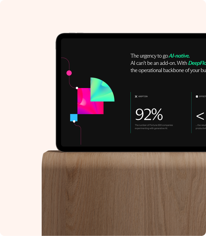 The visual system was built around the idea of flow. Fluid and glass-like, it reflects DeepFlow’s philosophy of seamless AI orchestration guided by structure and control. We created two distinct gradient elements that express movement, depth, and directional clarity.